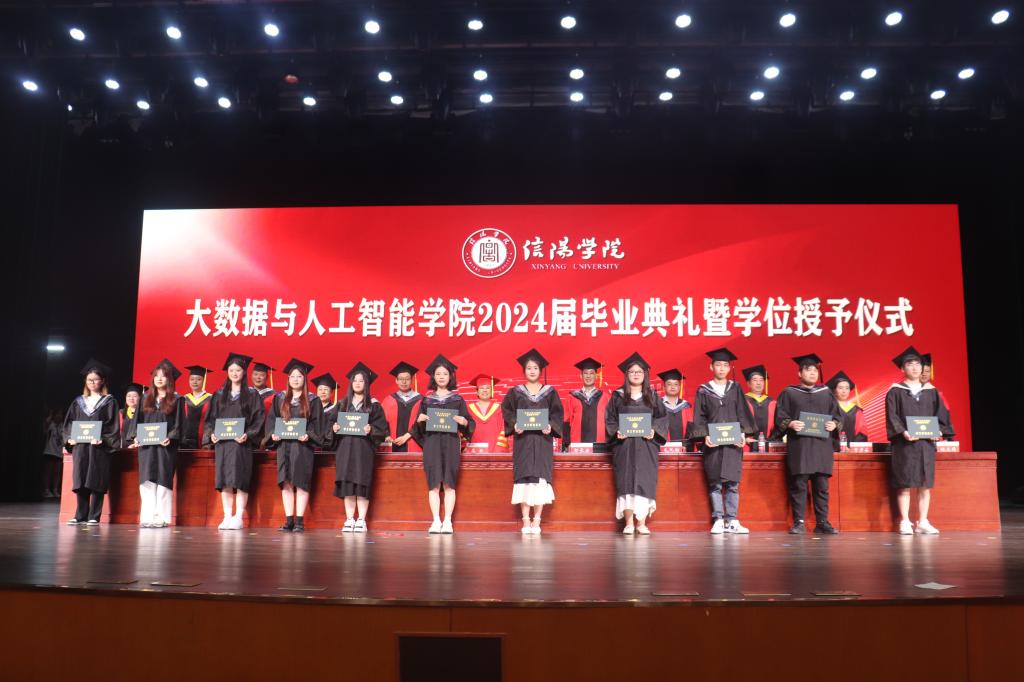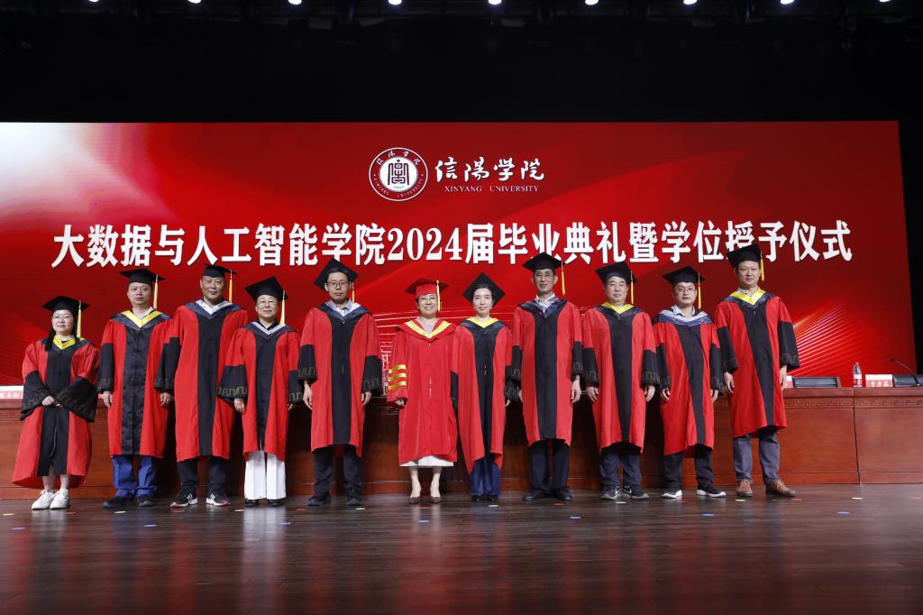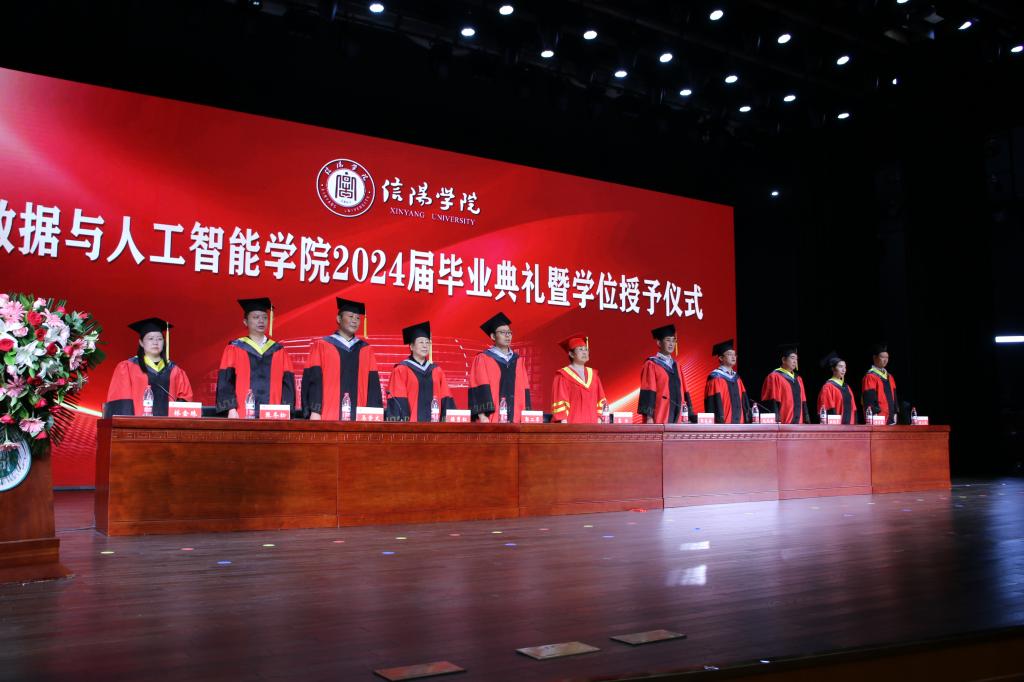 6月3日上午,大数据与人工智能学院2024届毕业典礼暨学位授予仪式在学校音乐厅隆重举行。信阳学院理事长高云、大数据与人工智能学院院长邬长安、党总支书记郭二军、教学副院长毛凤翔、特聘教授侯秀红、特聘教授杜祝平、特聘教授马学文、副教授张冬松、副教授倪天伟、副教授贾彦茹、副教授林金珠等校领导、专家教授出席毕业典礼,共同见证2024届毕业生的重要时刻。我院毕业生、在校生代表、教师代表等200余人参加了毕业典礼,典礼由郭二军主持。