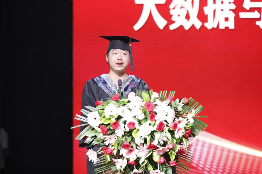 优秀毕业生代表姜真理在发言中表达了对母校、老师、同窗的诚挚感谢,分享了四年的求学生涯中收获了面对挫折的勇气、取得成绩的喜悦和许多美好的回忆,并表示会继续坚定自己的信念,脚踏实地,为梦想努力奋斗。