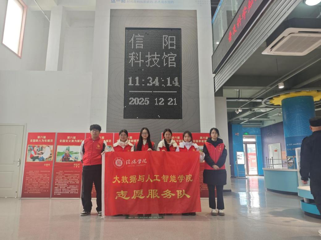 为弘扬“奉献、友爱、互助、进步”的志愿服务精神,深化产教融合,服务地方科普事业。12月21日,大数据与人工智能学院志愿服务队组织志愿者分批次前往信阳市科技馆开展主题科普志愿服务活动,将人工智能前沿知识与公众科普需求紧密结合,为青少年及市民搭建起一座通往科技未来的桥梁。