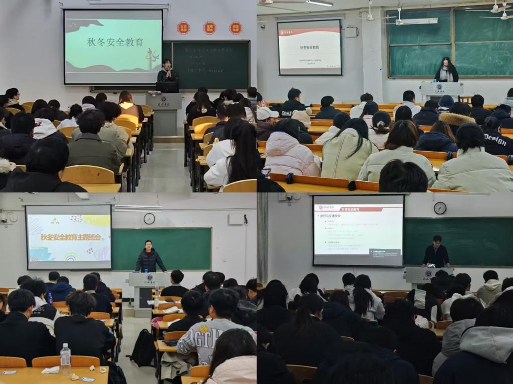 班会还结合秋冬季节特点,围绕消防安全、交通安全、传染病防控等方面展开教育。针对消防安全,详细讲解了宿舍用电安全、防火知识,严禁使用违规电器等。针对交通安全,强调了交通安全的注意事项,提醒学生遵守交通规则。在传染病防控方面,针对流感等秋冬高发传染病,普及预防知识,倡导养成良好卫生习惯。