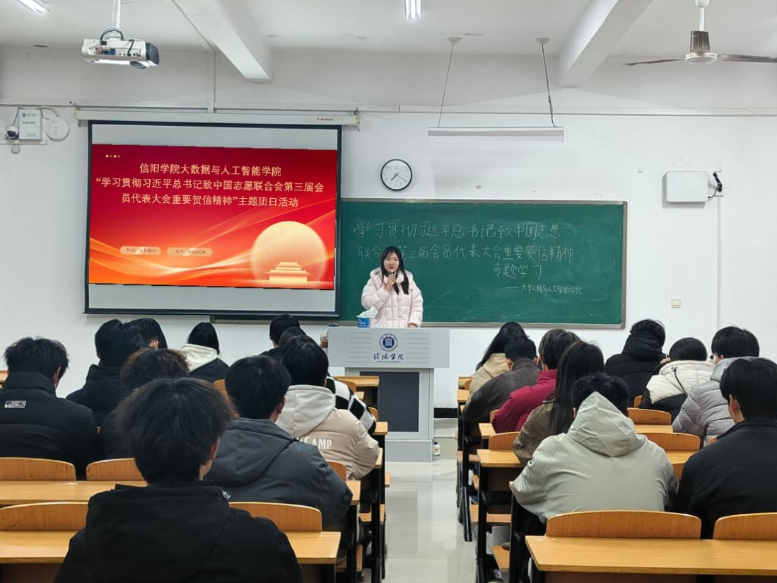 为深入学习贯彻习近平总书记致中国志愿联合会第三届会员代表大会的重要贺信精神,筑牢青年志愿服务思想根基,12月24日晚上,大数据与人工智能学院团总支组织开展“学习志愿精神·青春勇担当”专题学习活动。学院学生干部代表、志愿服务队骨干参与本次活动,活动由学院团总支副书记宋妍主持。