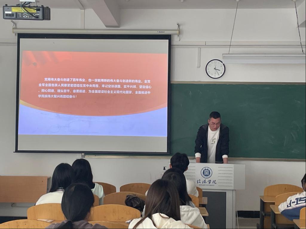 2024年11月5日夜晚,在人文楼415教室举行了以《坚定理想信念,争当时代新人》的专题党课。本次培训党课由辅导员老师徐瑞爽主讲。首先,她阐述了青年一代坚定理想,永葆先进的重要意义,同时结合陈延年、陈乔年等革命先烈的英勇事迹,希望同学们能够把握主题教育的总要求,认真学习,树立崇高理想,传承革命先烈的奋斗精神,始终坚持正确的价值导向。她指出,陈延年、陈乔年等革命先烈为了国家的独立和民族的解放,英勇斗争、甘于奉献,甚至付出了宝贵的生命。他们的事迹不仅是历史的见证,更是我们前进道路上的灯塔,指引着我们不忘初心,勇敢前行。徐瑞爽老师系统梳理了自新民主主义革命时期到中国特色社会主义新时代中各个时期青年发挥的重要作用,并通过“红旗渠精神”“井冈山精神”“长征精神”等一系列革命和建设时期的典型案例,阐述了青年能吃苦、勇担当的精神和在关键时刻展现的坚韧的毅力。她鼓励同学们要树立远大理想,始终坚持马克思主义的指导思想,坚定中国特色社会主义道路自信,坚信在党和国家的领导下,中华民族一定能够实现伟大复兴。