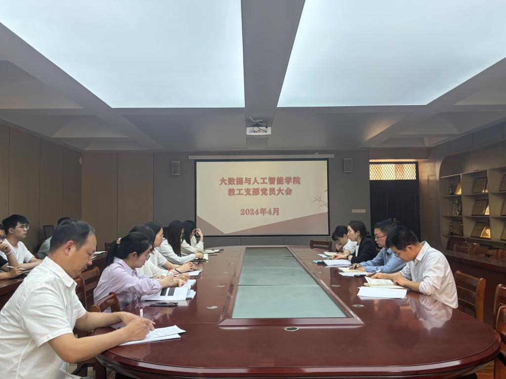 4月24日下午,大数据与人工智能学院在数计楼407会议室召开教工支部党员大会。专题学习新修订的《中国共产党纪律处分条例》(以下简称(条例)),部署安排学院各党支部开展专题学习会的准备工作。学院党总支副书记毛凤翔主持并讲话,教工支部全体党员参加本次会议。